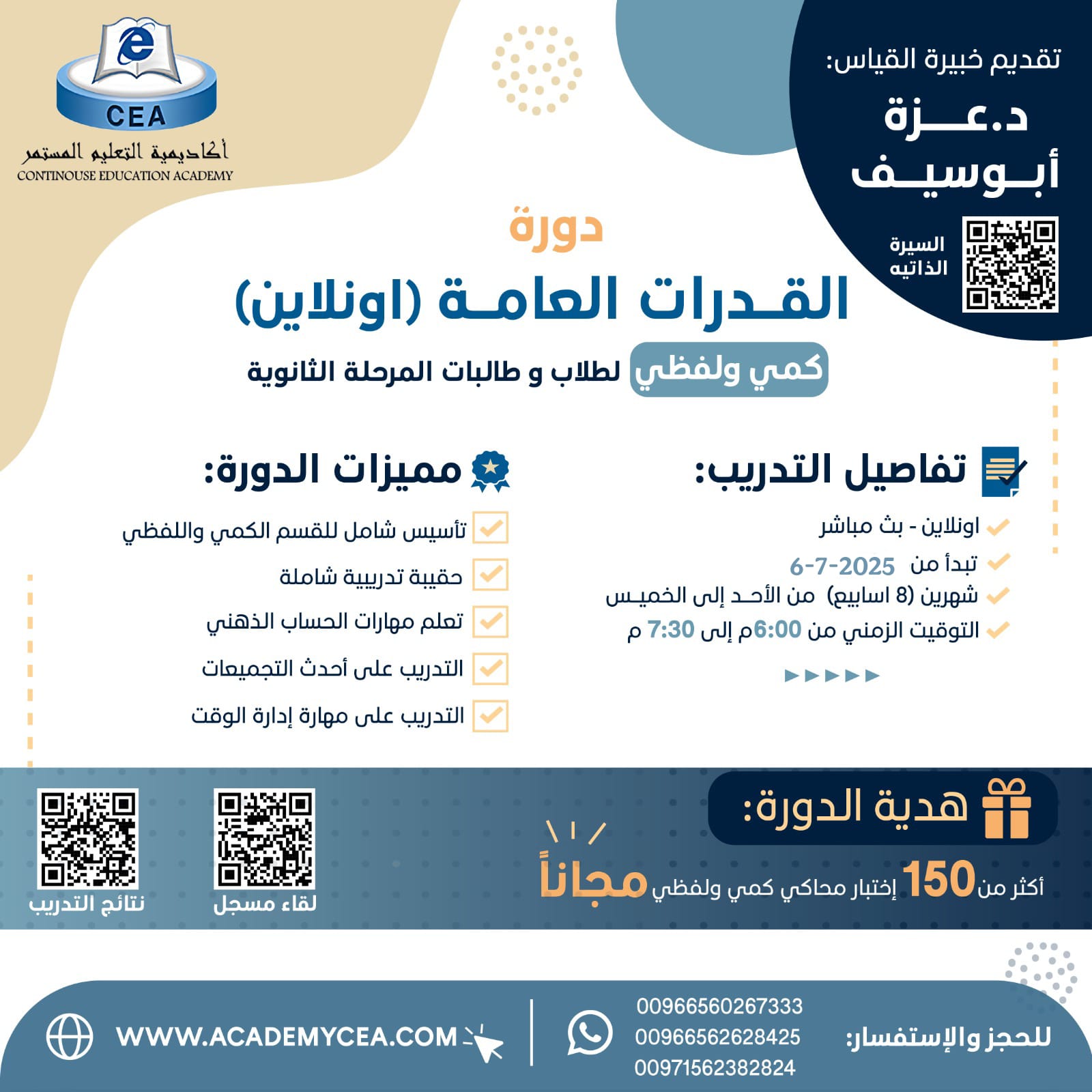 in القدرات العامة للمرحلة الثانويةAbout this course