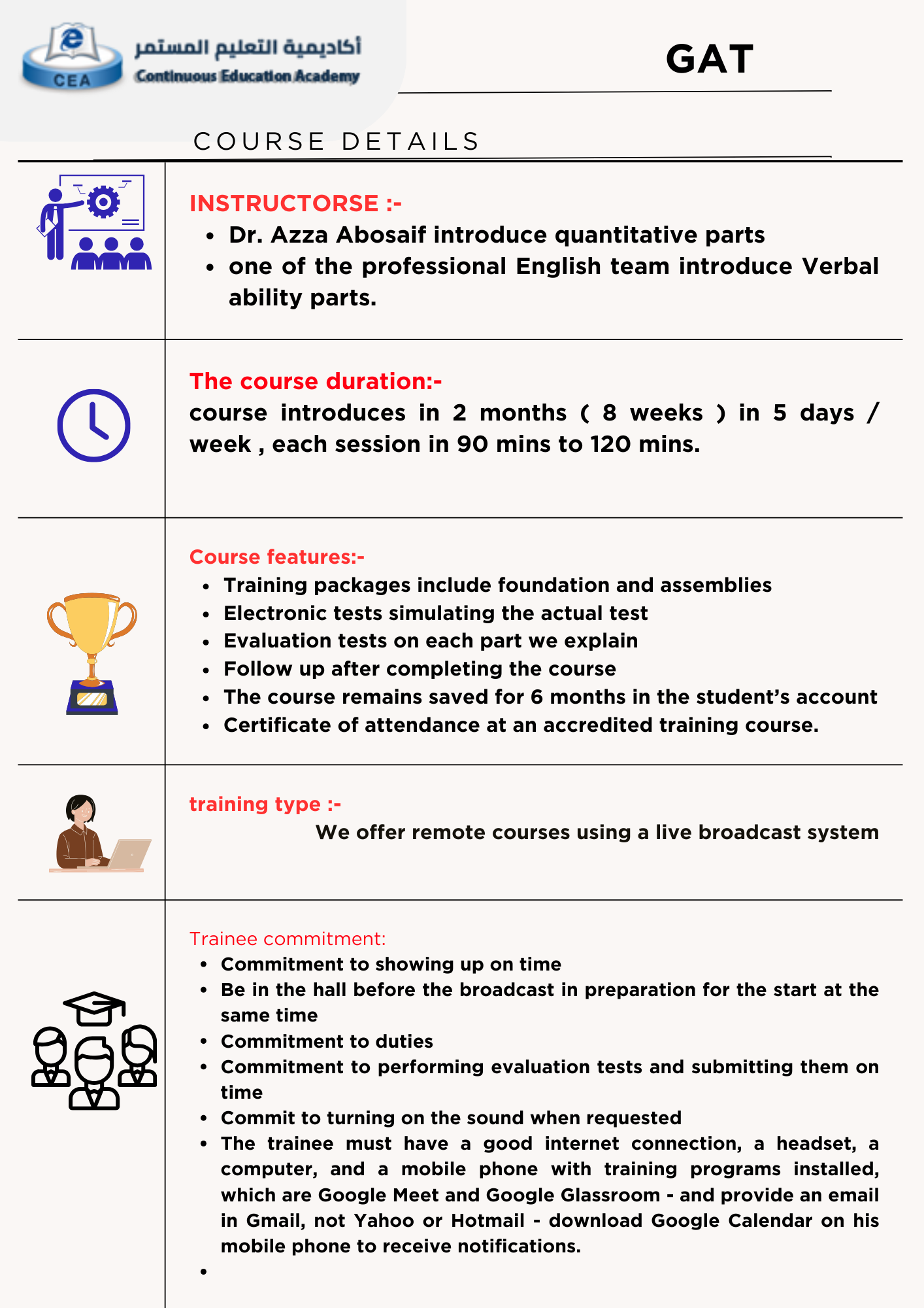 Under the academic supervision of Dr. Azza Abosaif and her specialized team with over 17 years of experience in aptitude training, you'll receive expert instruction tailored to help you master the test.